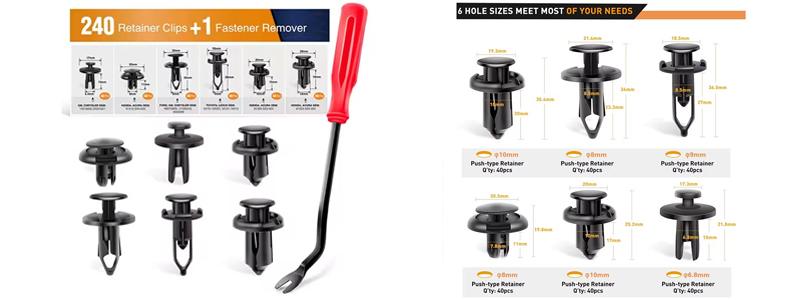 Durch Push-In-Erweiterungskernnägel können Klammern für Scheinwerfer (z. B. Scheinwerfer, Rücklichter usw.) oder elektrische Gerätekomponenten in einem Fahrzeug sichern. Expandierende Spikes bieten eine größere Stabilität für elektrische Komponenten, die an Kunststoff- oder Verbundwerkstoffen gesichert werden müssen.