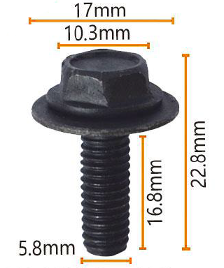 Die speziell gestalteten Länge verjüngt sich von 17 mm oben bis 5,8 mm unten, während der Bolzendurchmesser bei 10,3 mm und am Boden 22,8 mm beginnt, um eine präzise Befestigung und eine breite Kompatibilität zu gewährleisten.